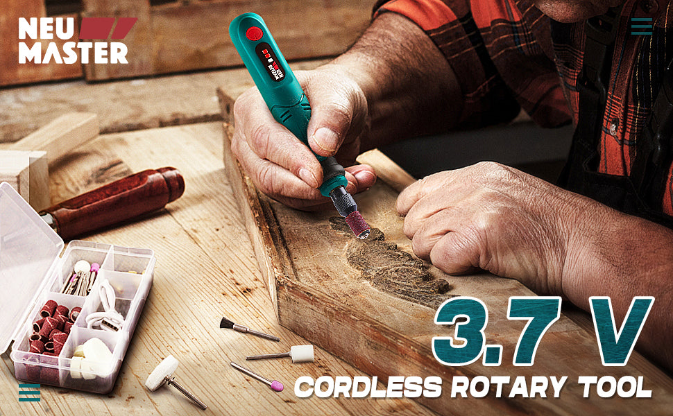 🛠️【55PCS Versatile Accessories】Upgrade with our NEU MASTER's cordless rotary tool! Perfect for polishing, sanding, engraving, and drilling in various materials.
