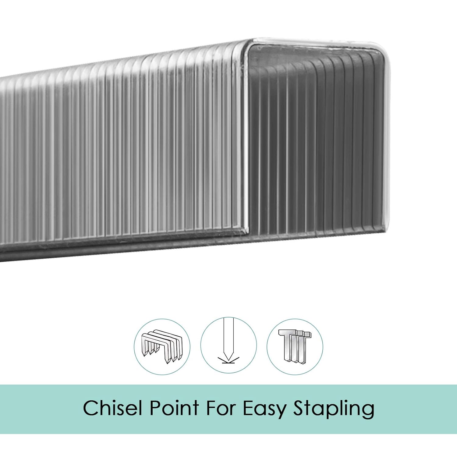- [Sharp Chisel Point] --- Designed with sharp chisel points that fewer jams and buckles. Perfect performance means easily penetrate and precision stapling.