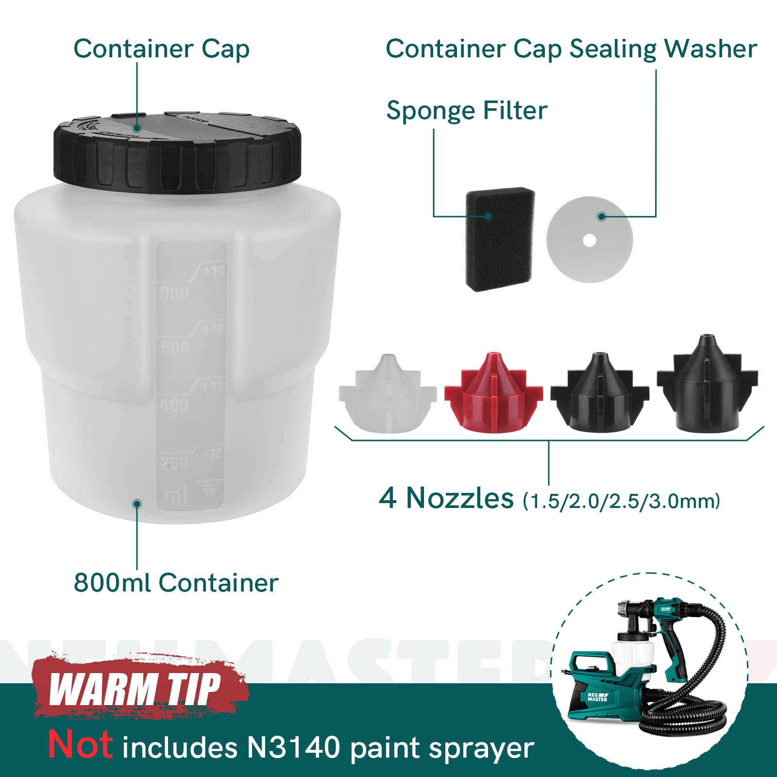 🔥【Pro Tip】Accessories exclusively compatible with NEU MASTER N3140 paint sprayer. After using the electric paint spray gun, ensure prompt cleaning to extend its lifespan.
