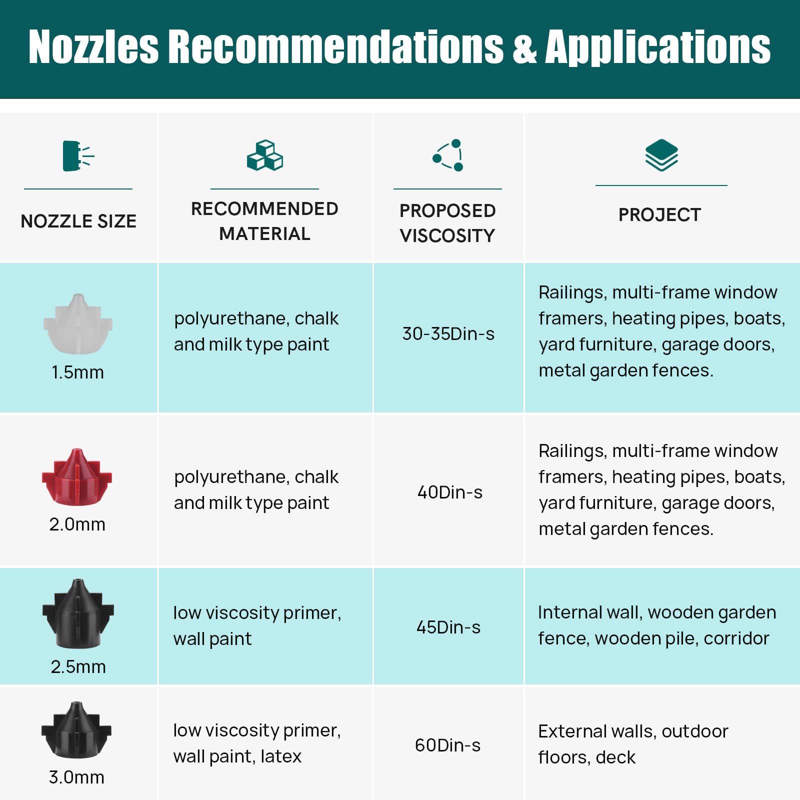 🌐【Versatile Applications】With 4 nozzle sizes catering to specific paint or stain types, select the appropriate nozzle for your spray application. Refer to the listing image for size specifics.